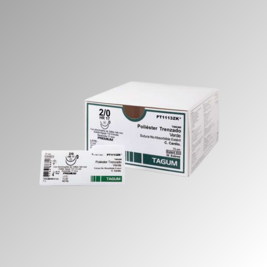 El poliéster es un material sintético trenzado recubierto, lo cual permite un paso muy suave por los tejidos. De característica no trombogénica, no capilar y de excelente seguridad en el anudado. Es inerte y resistente a la tracción. Su composición está basada en poliéster de etileno de tereftalato recubierto con teflón o silicona.