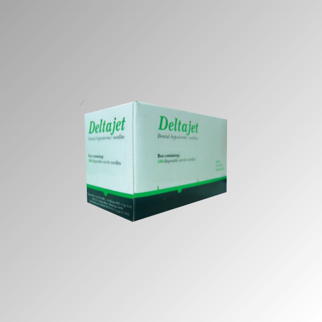 Las agujas DeltaJet son agujas hipodérmicas descartables, estériles, no tóxicas y libres de pirógenos, diseñadas para procedimientos odontológicos. Se utilizan en sistemas de anestesia tipo carpule para garantizar una punción suave y eficaz, minimizando la incomodidad del paciente. Se presentan en diferentes longitudes y calibres, incluyendo cortas (21mm), extra cortas (12mm), intermedias (25mm) y largas (30mm).
