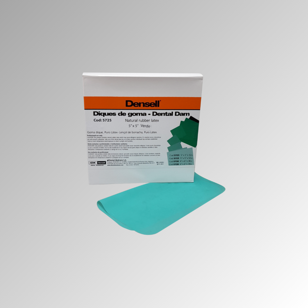 Es el primer dique dental de látex libre de polvo y bajo en proteínas, lo que lo hace la mejor elección para uso profesional. Color verde Aroma menta Espesor 0.22 mm. PRESENTACIÓN Caja x 52 láminas de 5×5 convencional
