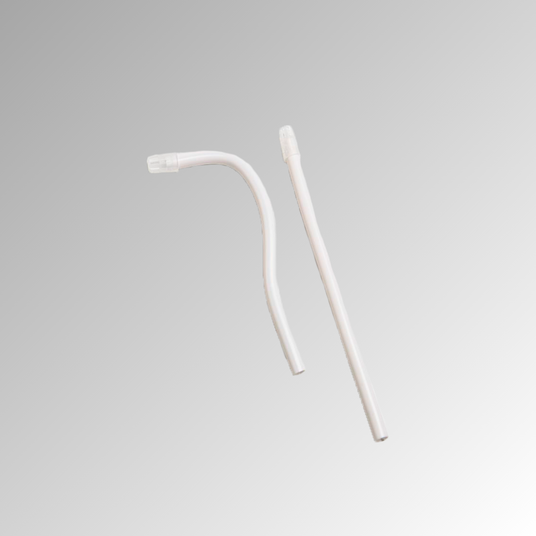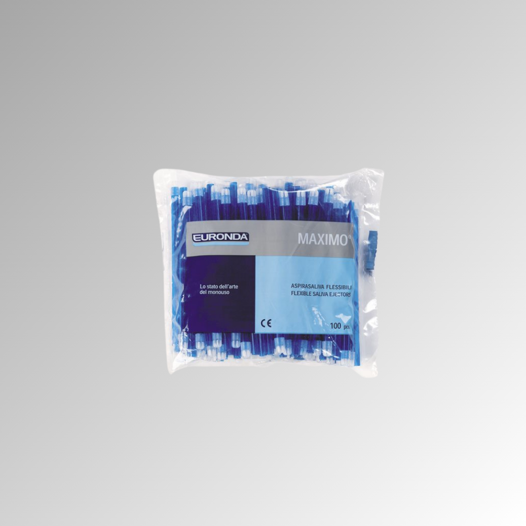 Eyectores de saliva flexible desechable en PVC transparente no tóxico. Incorporan un hilo metálico para que mantengan perfectamente el ángulo deseado, sin riesgo de que se salga al plegarlo. Capuchón de forma redondeada, fijo o extraíble, ideal para intervenciones con mucosas irritadas. Colores: Azul, transparente, lila,