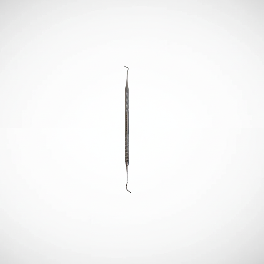 Cureta Gracey. Instrumento periodontal fabricado en acero inoxidable, diseñado para la remoción de cálculo subgingival y el alisado radicular, ofreciendo precisión y durabilidad.