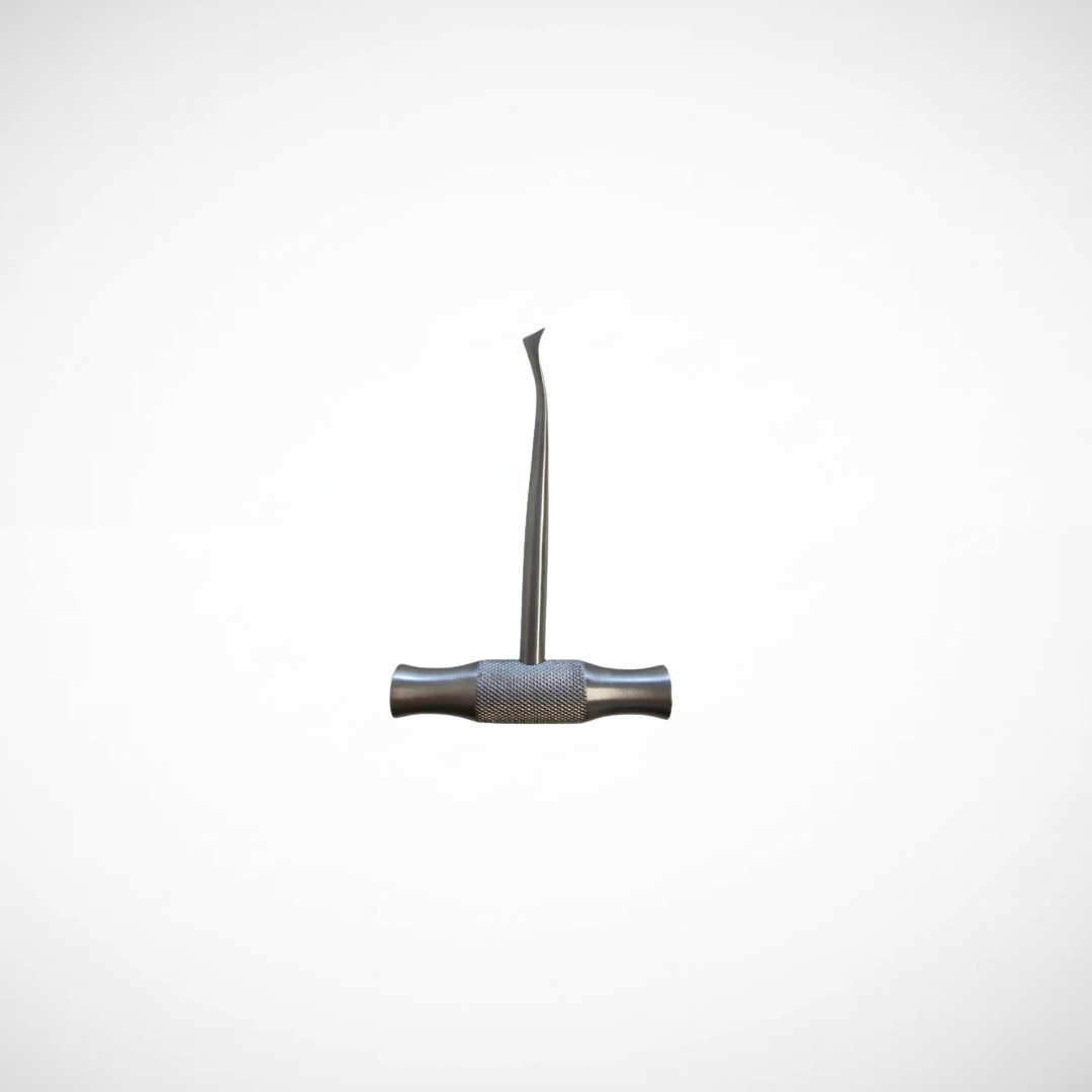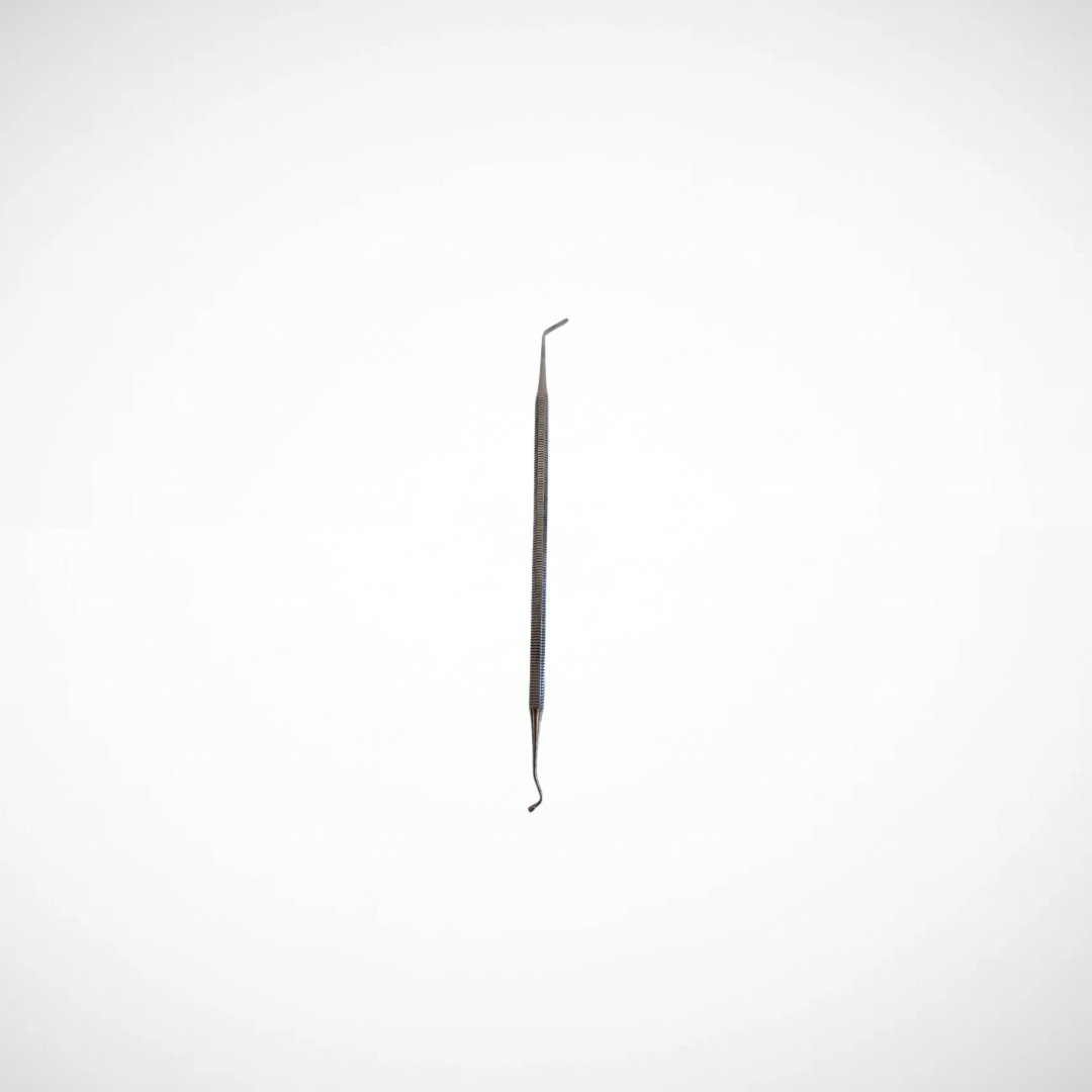 Periostótomo. Instrumento quirúrgico fabricado en acero inoxidable, utilizado para el despegamiento y elevación del periostio, facilitando el acceso al hueso durante procedimientos quirúrgicos odontológicos.