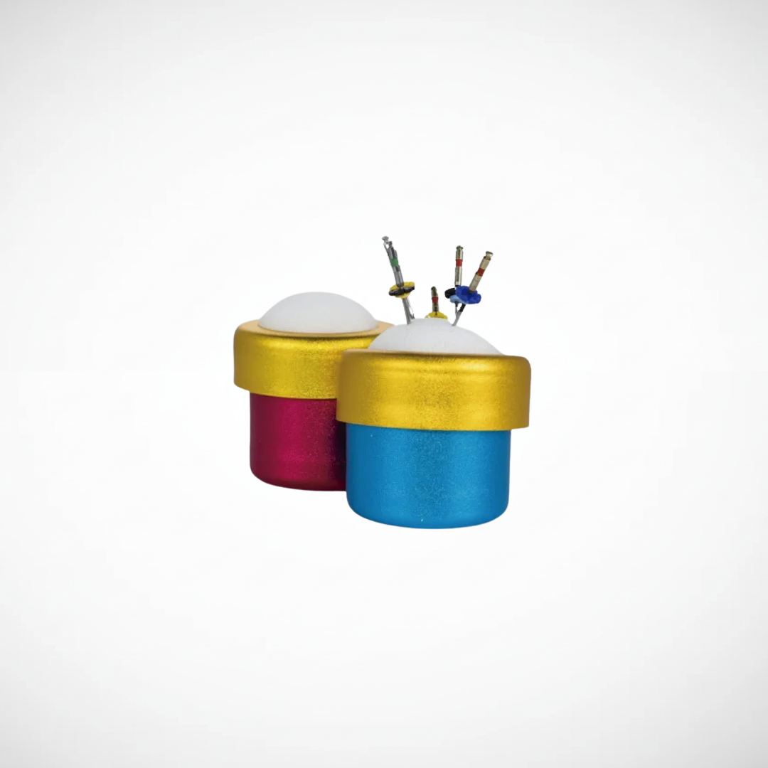 Esponjero endodóntico de aluminio.Utilizado como soporte, organización y limpieza mecánica para limas manuales y rotatorias durante todas las etapas del tratamiento.