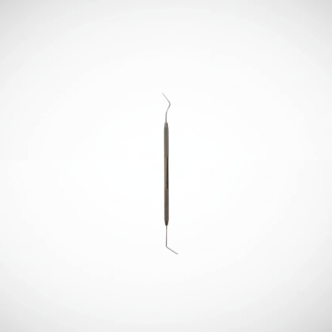 Explorador doble N° 5. Instrumento odontológico fabricado en acero inoxidable, utilizado para la exploración, detección de caries y evaluación de superficies dentales, ofreciendo acceso y precisión en distintas áreas.