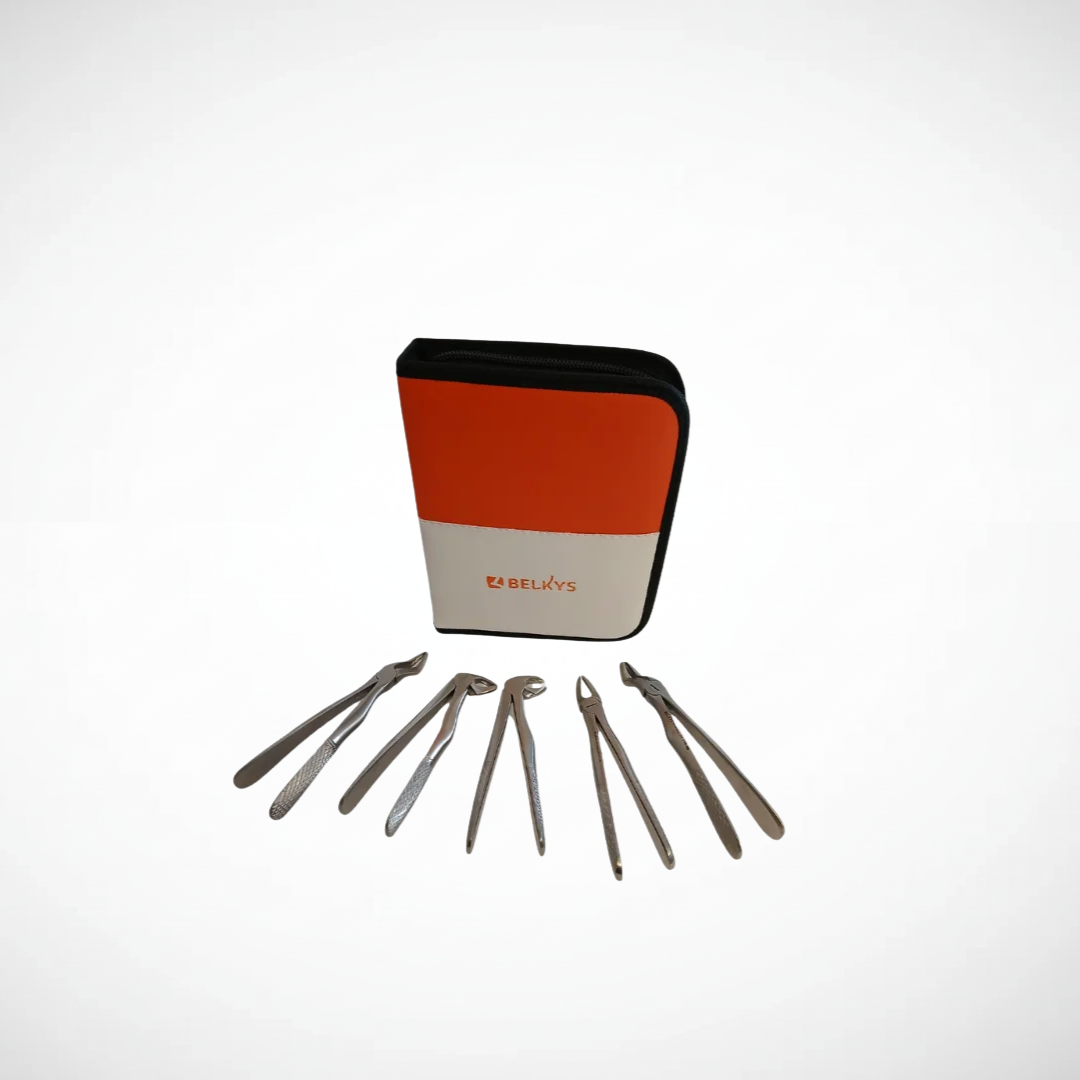 Presentación: juego x 5 piezas | Uso: extracción dental en pacientes pediátricos | Características: diferentes formas y tamaños adaptados a dientes de niños, diseño ergonómico para mayor control | Material: acero inoxidable de alta calidad.