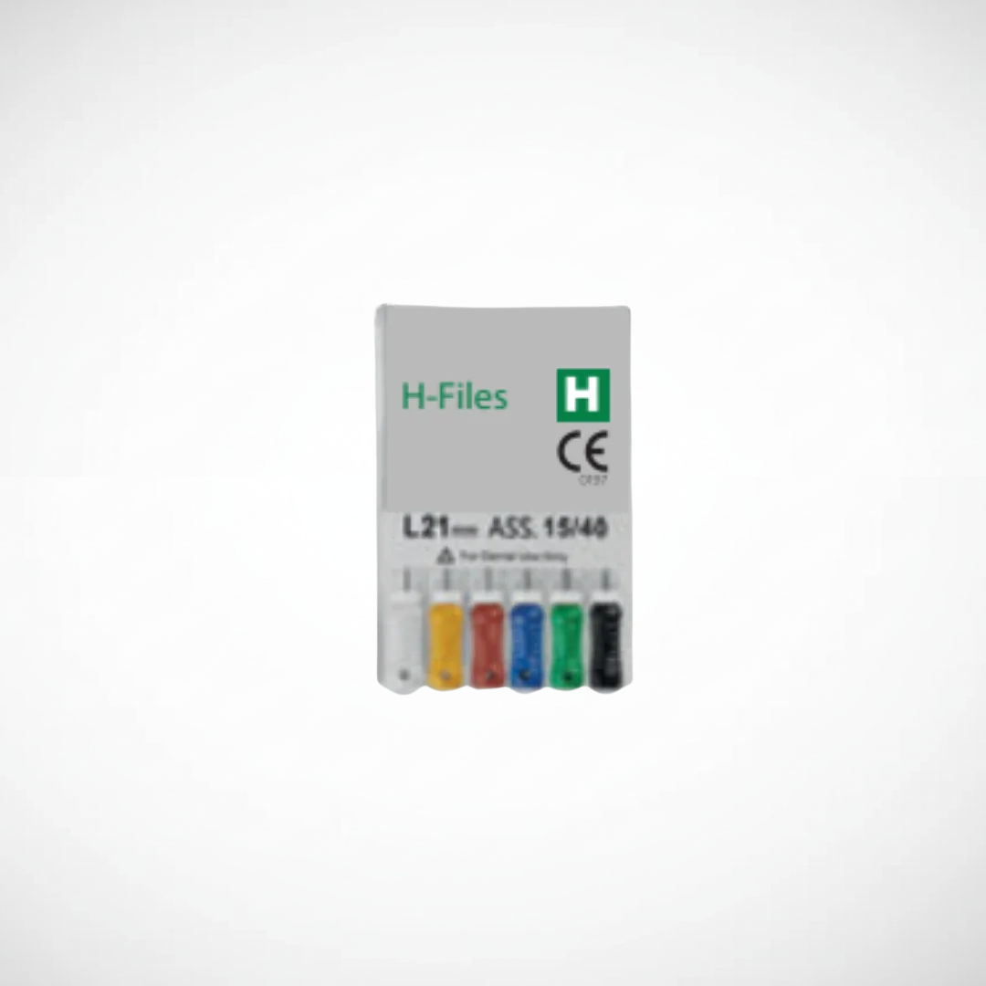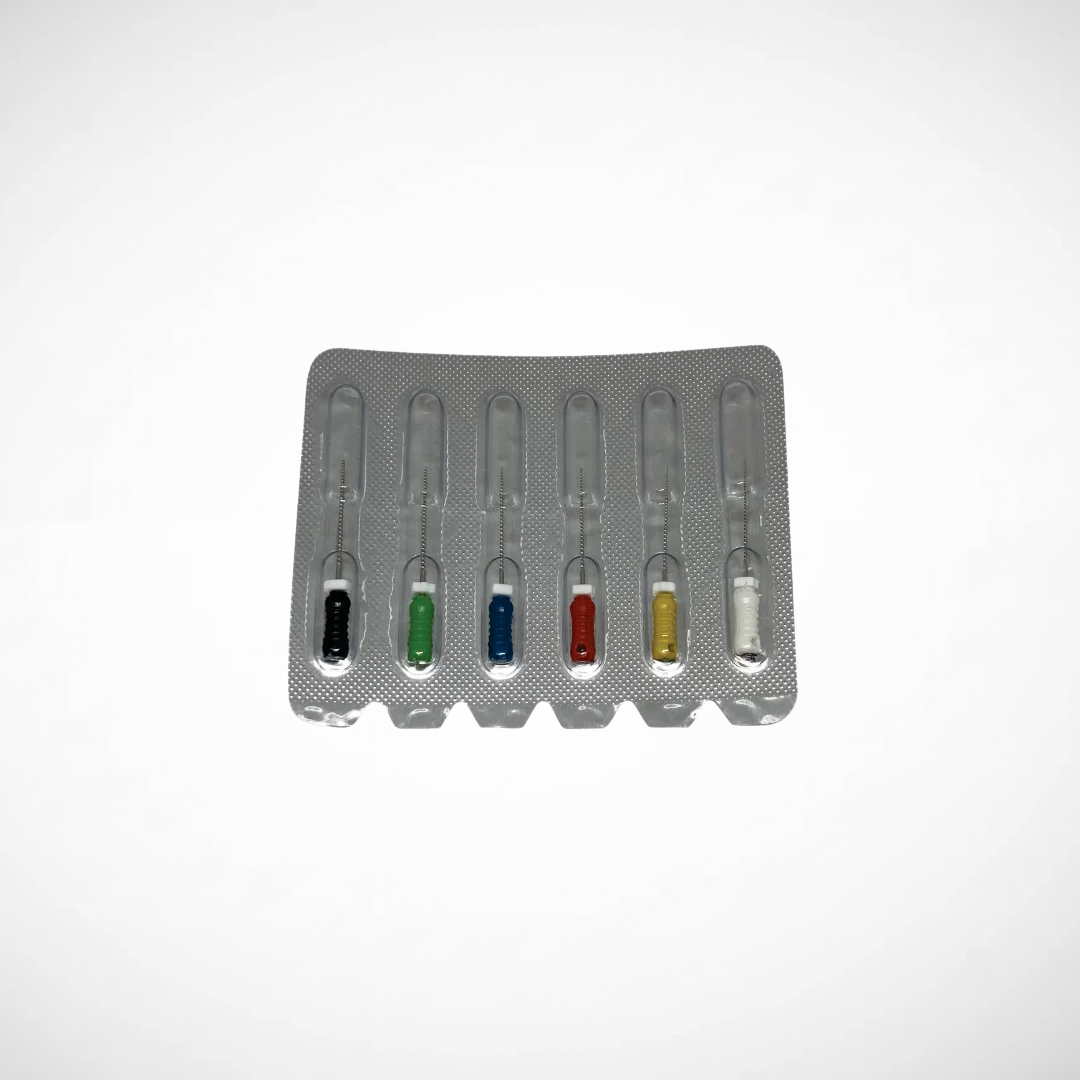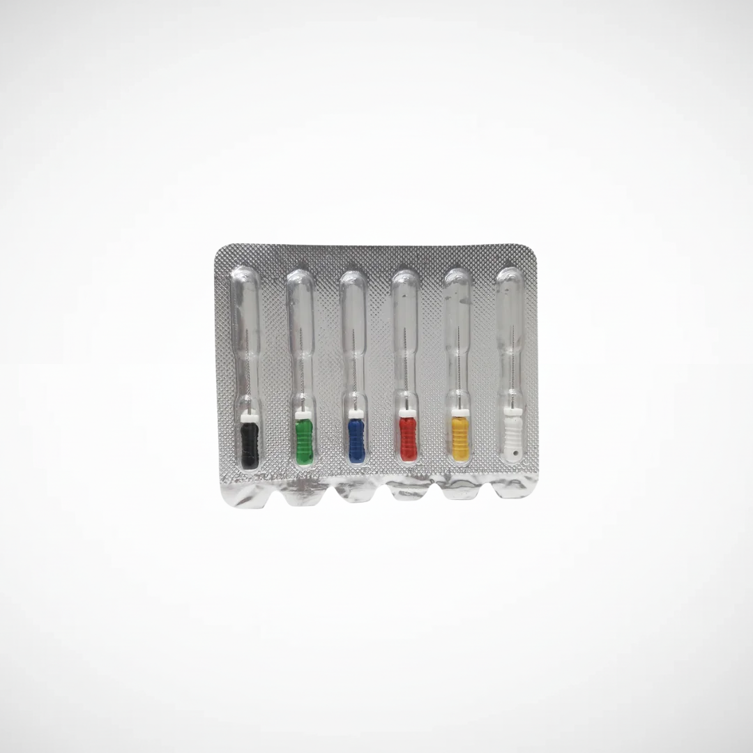 Presentación: caja x 6 unidades | Uso: conformación y limpieza de conductos radiculares en endodoncia | Características: alta resistencia, precisión de corte | Material: acero inoxidable.