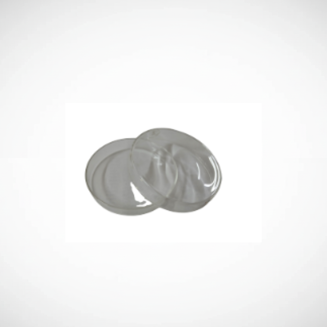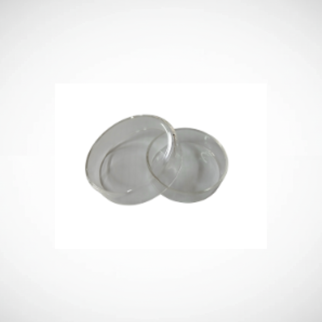 Cápsula de Petri chica. Recipiente de laboratorio fabricado en plástico transparente, utilizado para el cultivo, observación y manipulación de muestras en procedimientos de laboratorio.