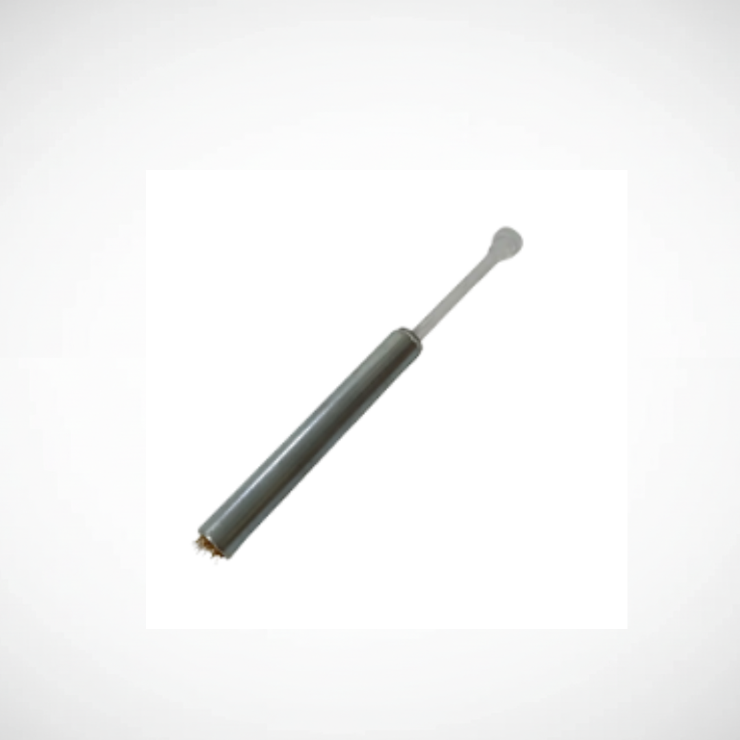 Cepillo limpia fresas. Accesorio práctico utilizado para la limpieza eficiente de fresas dentales, permitiendo remover restos de material y mantener los instrumentos en óptimas condiciones de uso.