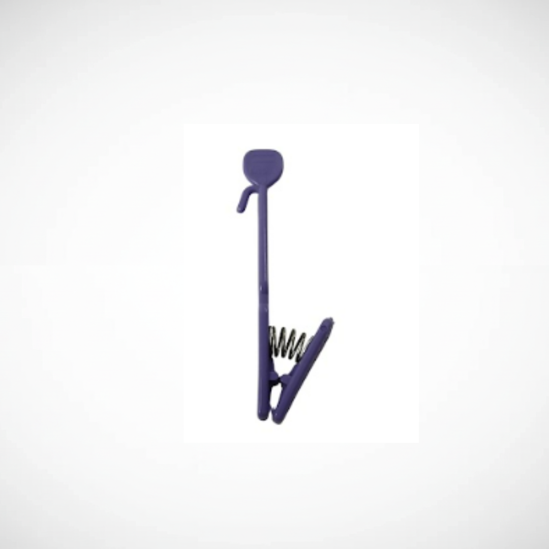 Clips plástico para RX odontológica, utilizado para sujetar la película radiográfica durante el proceso de revelado.