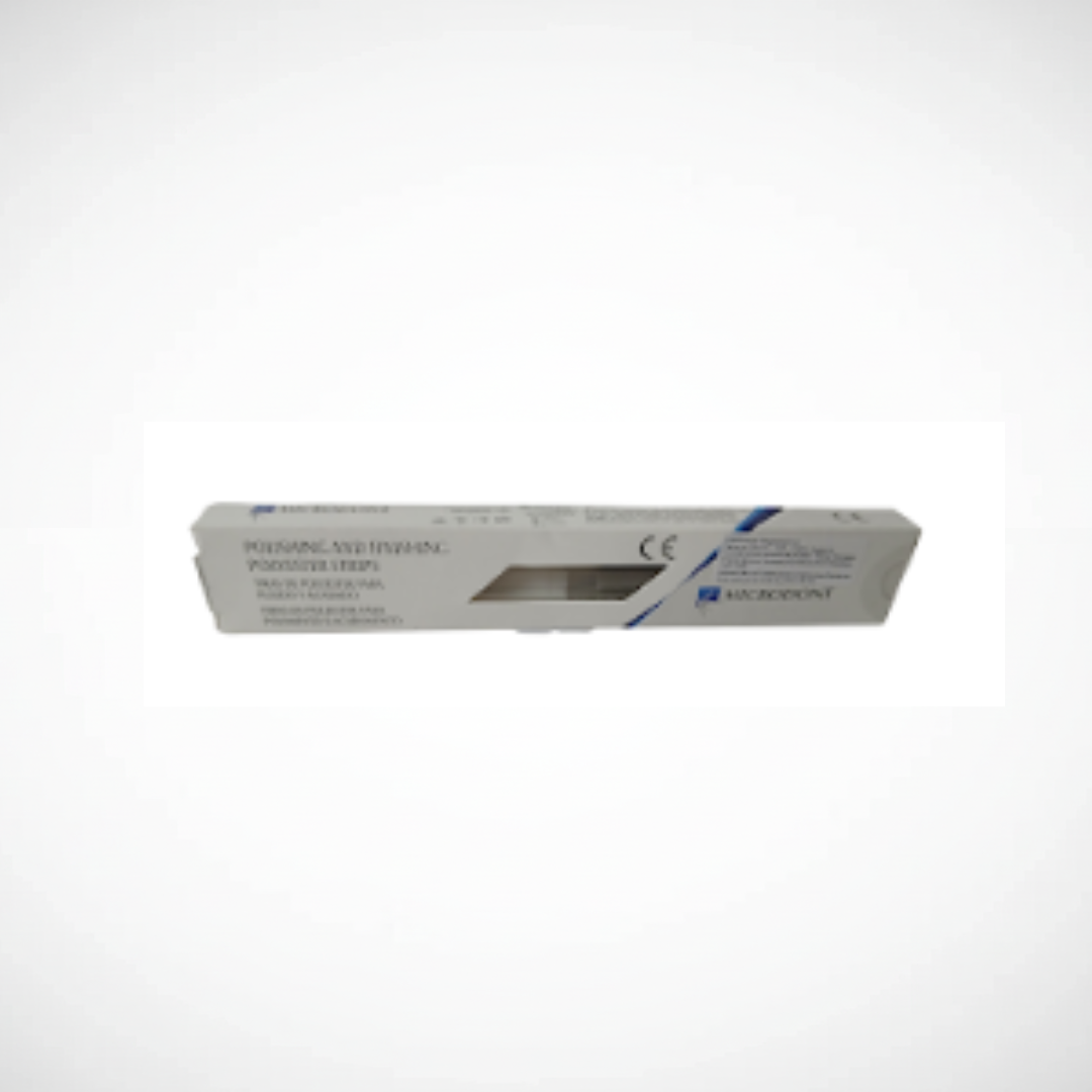 Tiras para pulir composite (x 100 unid.). Accesorios abrasivos diseñados para el acabado y pulido de restauraciones de resina compuesta, permitiendo lograr superficies lisas y un óptimo ajuste interproximal.