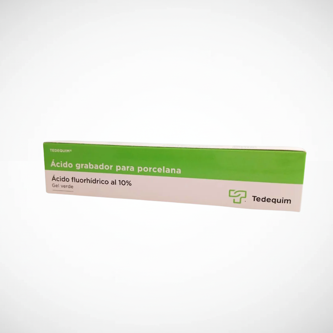 Gel para técnica de adhesión con grabado ácido. Consistencia: baja viscocidad. Fácil de remover al enjuagar la preparación. Este gel ácido es de una consistencia ideal, lo cual facilita la penetración del ingrediente activo. Su viscocidad permite una mejor remoción al enjuagar. Color: Verde Concentración: 37% Ácido fosfórico Presentación: Jeringa 12g + 3 puntas cánulas aplicadoras Marca : DENSELL.
