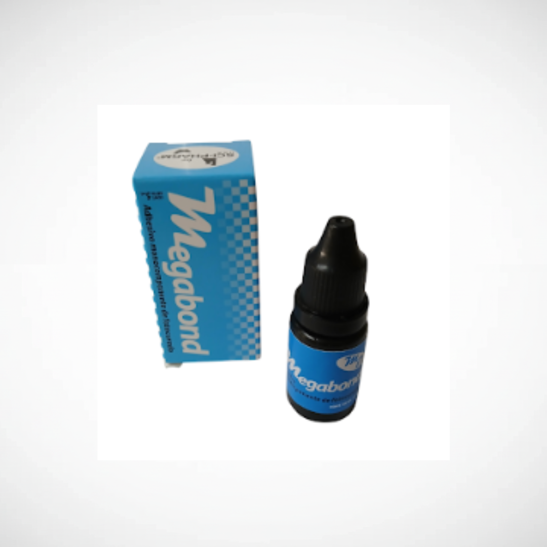 Adhesivo Megabond (frasco x 5 ml). Sistema adhesivo odontológico utilizado para la unión eficaz de materiales restauradores al esmalte y la dentina, brindando alta adhesión y durabilidad clínica.